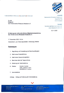 Die außerordentliche Jahreshauptversammlung findet am Montag, 17.11.2025 im Vereinsheim statt.