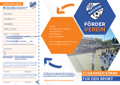 Unter diesem Motto unterstützen wir als Förderverein den SC Rhenania Hinsbeck bei der Erweiterung und Entwicklung der Sportanlage genauso wie bei der Ausbildung der Trainerinnen und Trainer und bei besonderen Aktionen wie der jährlichen Pfingstfahrt der Jugendabteilung.