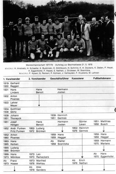 1960 wurde Hans Kerken Vereinsvorsitzender. Nach einigen Höhen und Tiefen wurde die erste Mannschaft 1963 Gruppensieger der