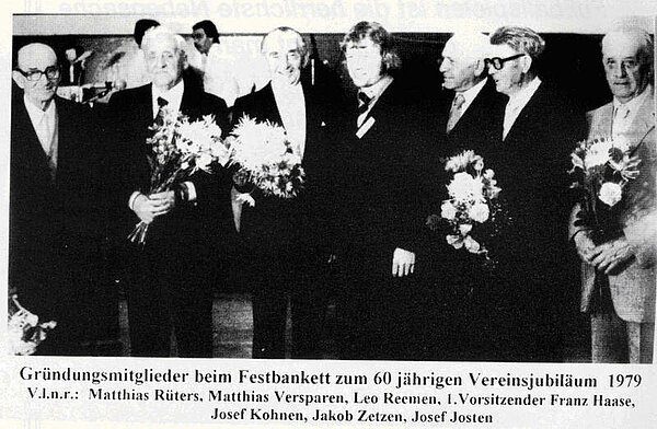 Mathias Sleven, Heinrich Glasmachers, Gerhard und Johannes Hüren, Jakob Schommer, Karl Aarden, Josef Fretz, Josef Hölter, Johann Versparen, Gerhard Raggen, Gottfried Görtz, Johann Kohnen, Matthias Görtz, Josef Breuers, Theo Winkels, Heinrich Moortz, Matthias Versparen, Willi Gerhards, Matthias Rüters, Josef Josten, Jakob Zetzen, Josef Kohnen und Kaplan Derks.